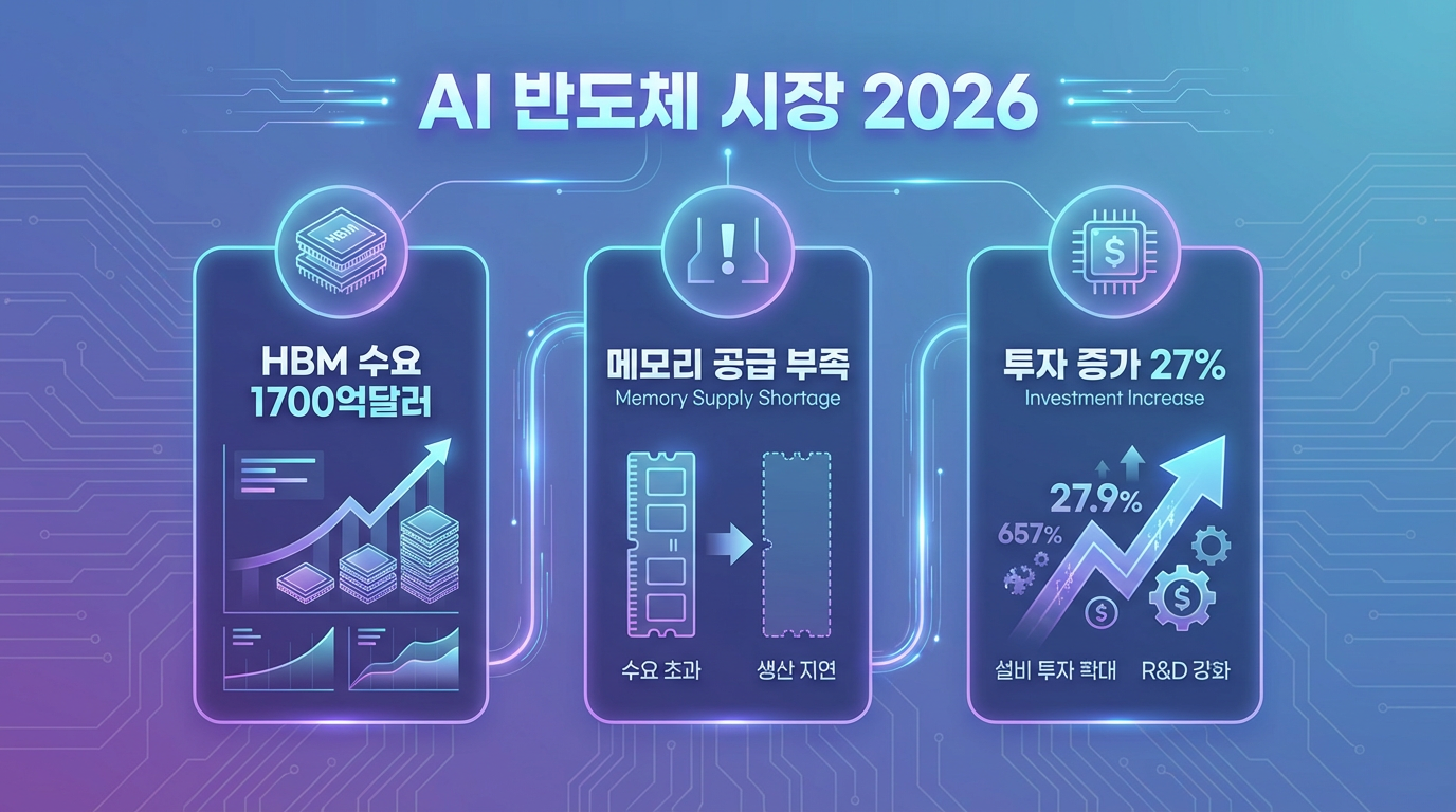2026년 1월, 국내 반도체 시장에 새로운 흐름이 나타나고 있습니다. 삼성전자와 SK하이닉스의 장비 투자가 전년 대비 27% 급증했고, 글로벌 DRAM 시장은 2024년 1,000억 달러에서 2026년 1,700억 달러로 성장할 것으로 전망됩니다. 특히 AI 데이터센터용 고대역 메모리(HBM) 수요 증가로 메모리 공급 부족 우려가 제기되고 있습니다.
