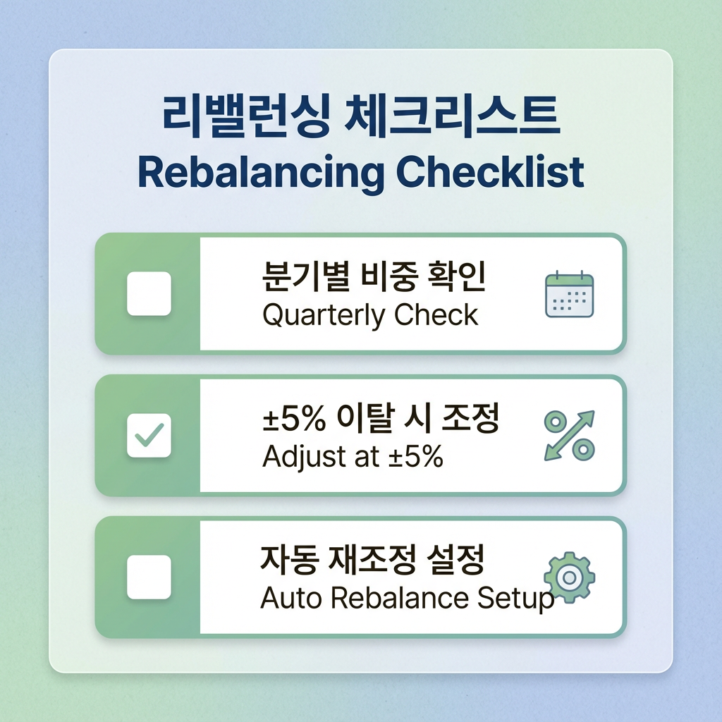 | 정기 리밸런싱 | 분기별 / 반기별 | 3개월 또는 6개월마다 자동 실행 |